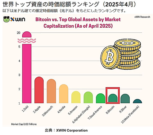 ビットコインの時価総額は、アルファベット(Google)、