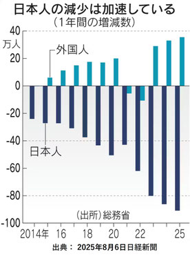 総務省の人口動態調査によると、日本の人口は1億2065万3227人で 前年から90万人減少し、16年連続のマイナスです。 90万人は和歌山県の人口87.6万人に近い数字で、 1年で日本の中から一つの県が消滅したようなものです。